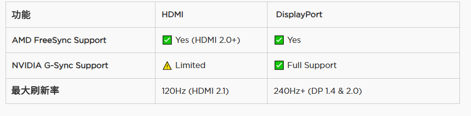 結論:對于PC游戲玩家來說,DisplayPort是較好的選擇,因為它支持更高的刷新率(240Hz、360Hz)和本機G-Sync和FreeSync兼容性。然而,HDMI 2.1非常適合主機游戲(PS5、Xbox Series X),因為它提供120Hz的4K VRR。