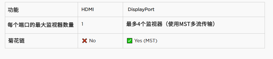 結論:如果您需要多顯示器設置,DisplayPort是更好的選擇,因為它支持通過MST(多流傳輸)菊花鏈連接多個顯示器。HDMI需要額外的適配器,這使得它不太適合多屏幕生產力或工業應用。