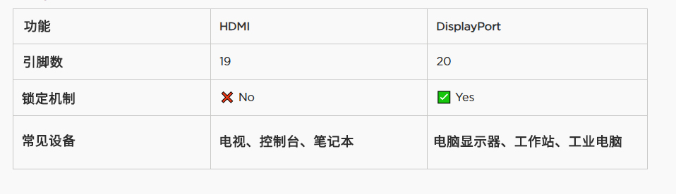 由于其鎖定機制,DisplayPort在物理上更安全,使其成為工業PC、工作站和關鍵任務應用的理想選擇。HDMI更為常見且用戶友好,但缺乏鎖定機制可能會導致意外斷開連接。