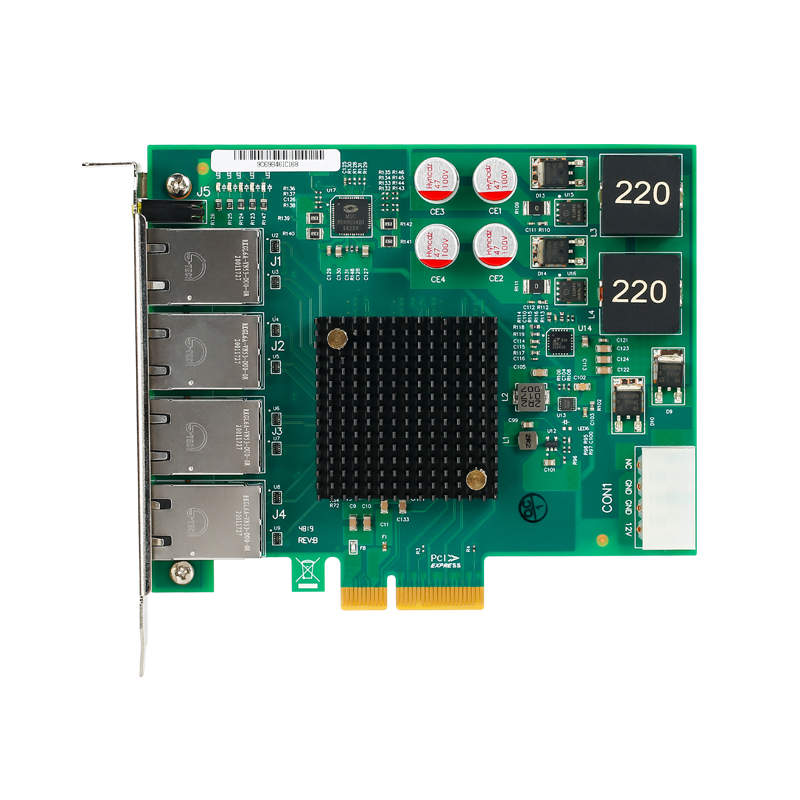 PCIe-8024:采用 4 顆 Intel i211AT 千兆以太網控制芯片,配備 PCI Express X4 2.0 接口,支持 2GB/s 帶寬傳輸。有 4 路單獨千兆以太網口,支持網絡巨幀及鏈路聚合,兼容 Win7、Linux 等操作系統。